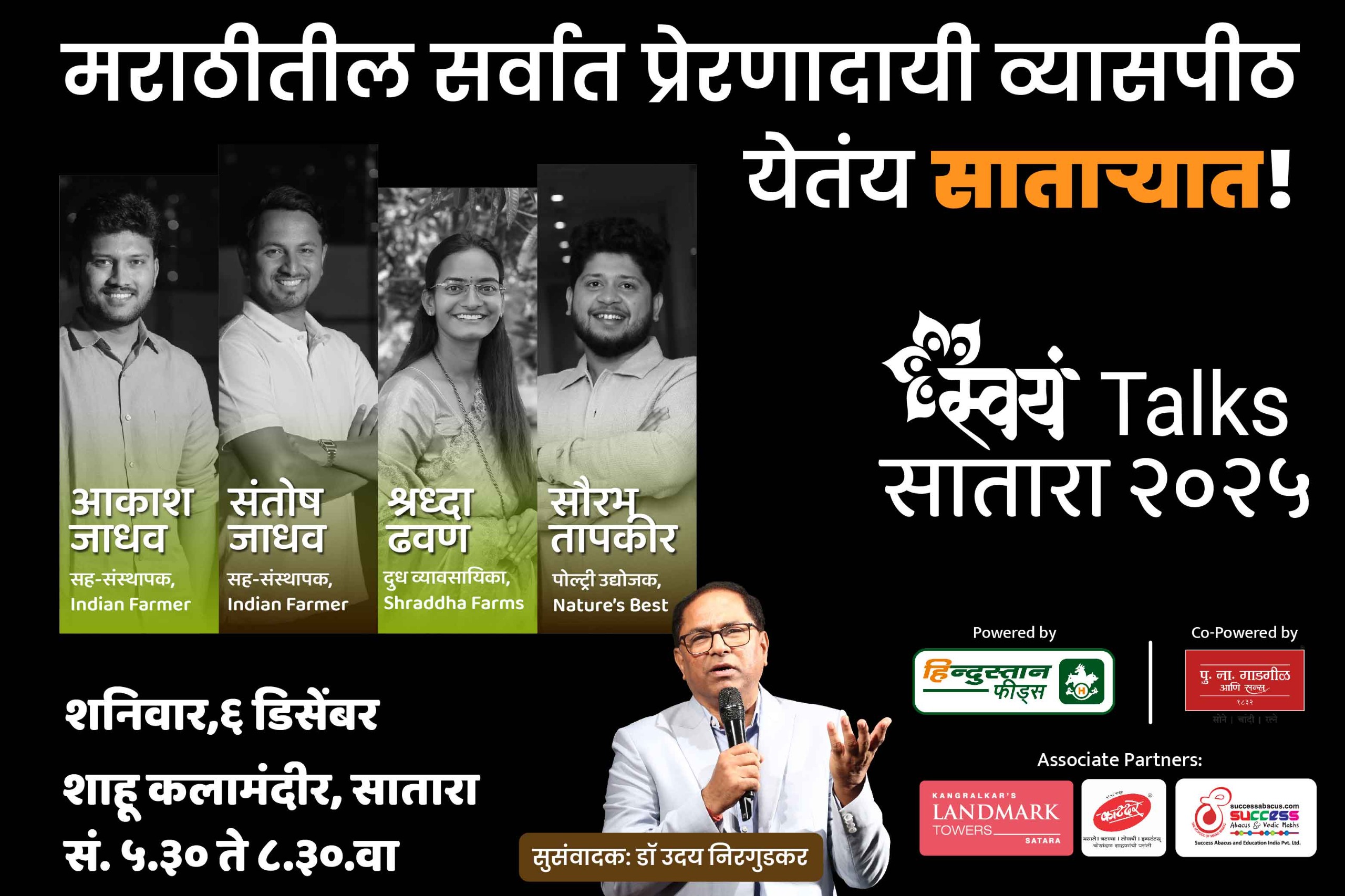 Normalस्वयं Talks सातारा २०२५- LIVE !तीन प्रेरणादायी वक्ते. तीन विचार. एक दिशा.शाहू क्लमंदिर, सातारासं. ५.३० ते ८.३० वाशनिवार, ६ डिसेंबरBOOK NOWDownload'स्वयं टॉक्स'Mobile App डाऊनलोड केलंत का ?भन्नाट व्हिडीओ आणि प्रेरणादायी पॉडकास्टPersonal Watchlist, Offline Viewingअशा अनेक features नी परिपूर्ण असे हे Mobile Appआजच डाऊनलोड करा !आता तुमच्या बोटांच्या फक्त एक क्लिक दूर !Download'स्वयं टॉक्स'Mobile App डाऊनलोड केलंत का ?भन्नाट व्हिडीओ आणि प्रेरणादायी पॉडकास्टPersonal Watchlist, Offline Viewingअशा अनेक features नी परिपूर्ण असे हे Mobile Appआजच डाऊनलोड करा !आता तुमच्या बोटांच्या फक्त एक क्लिक दूर ! Latest Speakers SWAYAM ORIGINAL Web Series Most Inspiring Women on Swayam Talks Swayam Talks – English Swayam Talks from the Beginning ‘जाई काजळ’ प्रस्तुत मनDay with अनघा – Season 3 काहीतरी नविन – Swayam Podcast Abhimanaspad Maharashtra – ORIGINAL DOCU SERIES BY SWAYAM मनDay with अनघा – Podcast (season 1 & 2 ) Social Change Makers Swayam Podcast